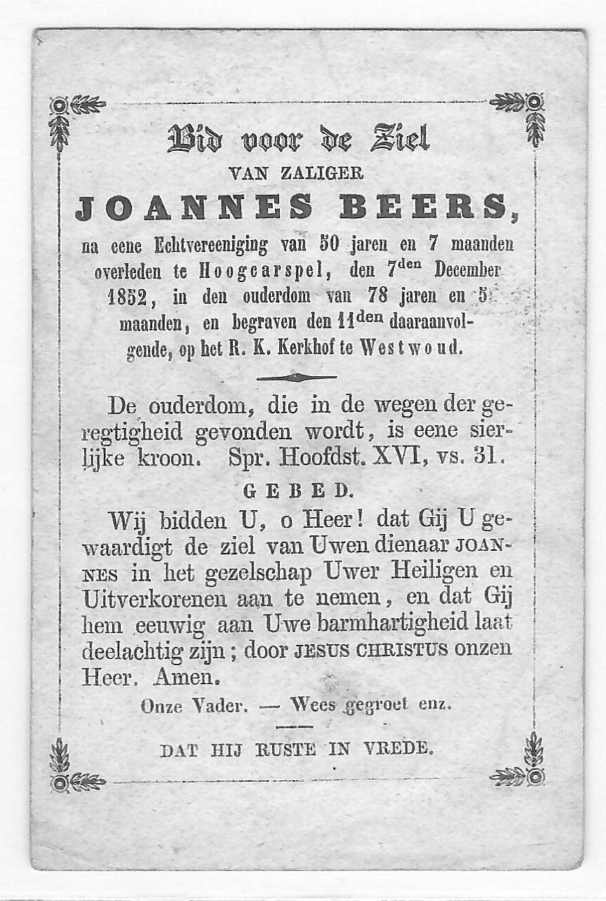 - Bladzijde: Bidprent Jan Beers (1774-1852)