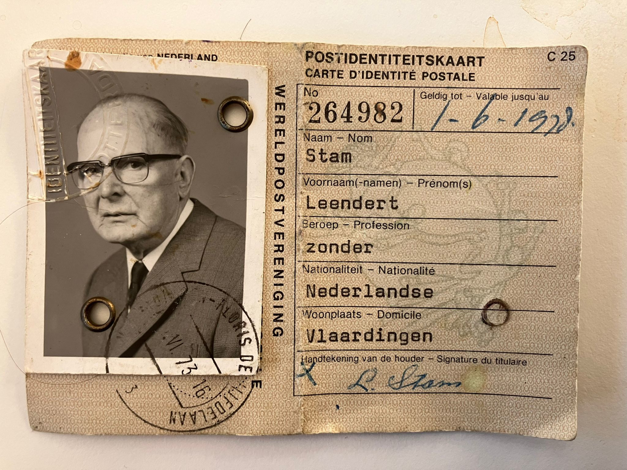 1973-06-16 postidentiteitskaart Leendert Stam.