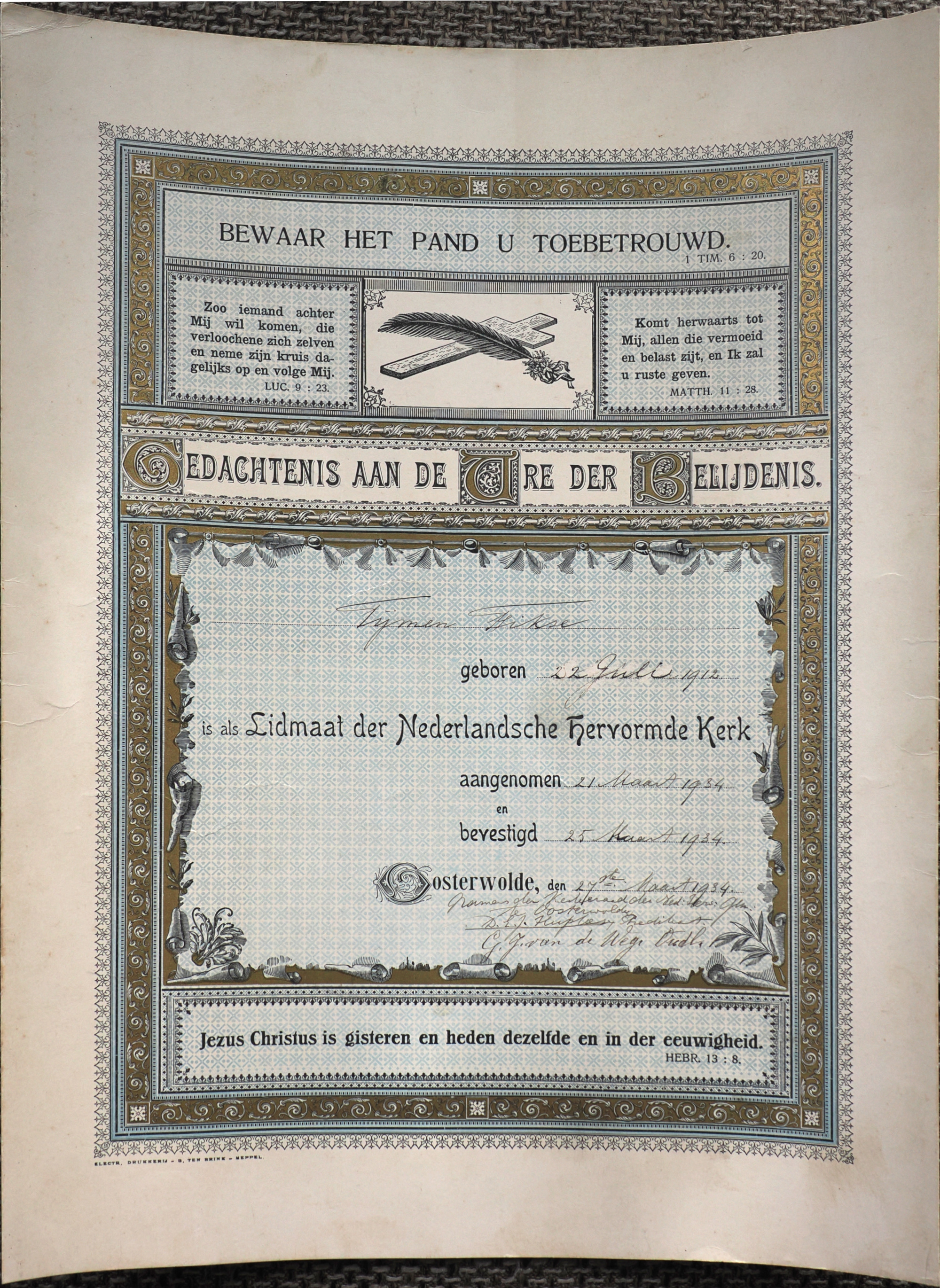 | Vormsel / Belijdenis | 1934-03-25 | Oosterwolde | ||