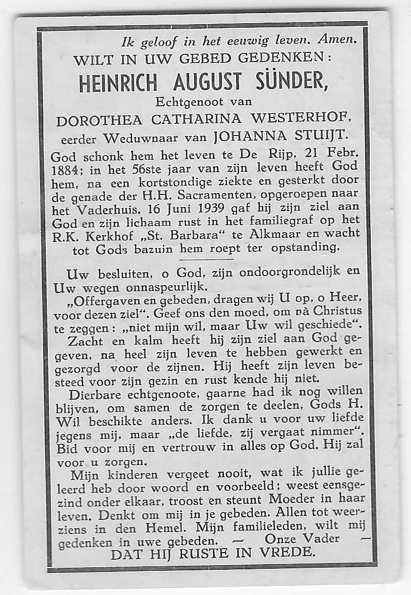 - Bladzijde: Bidprent Heinrich August Sünder (1884-1939)