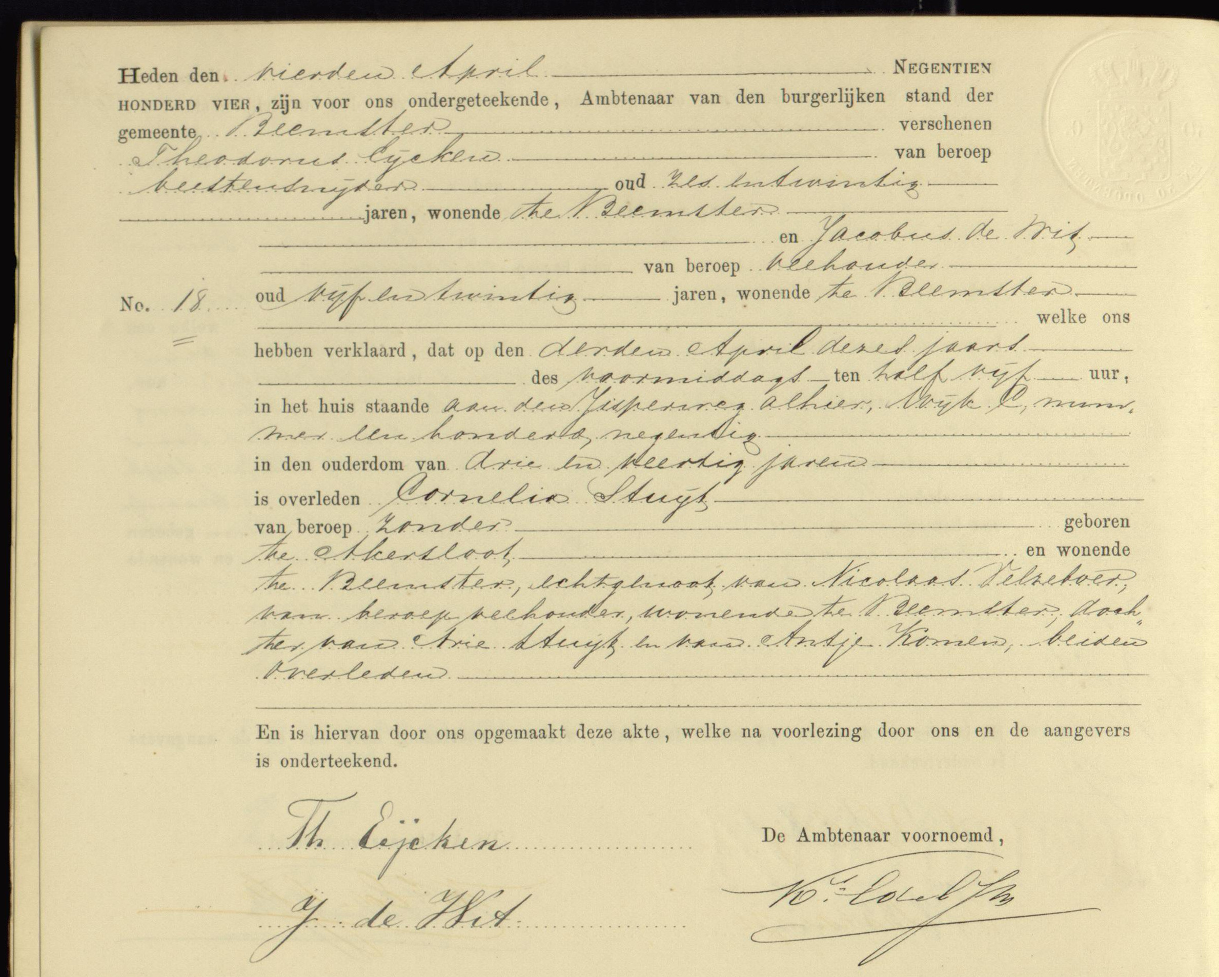 1904-04-04 overlijdensakte Cornelia Stuijt