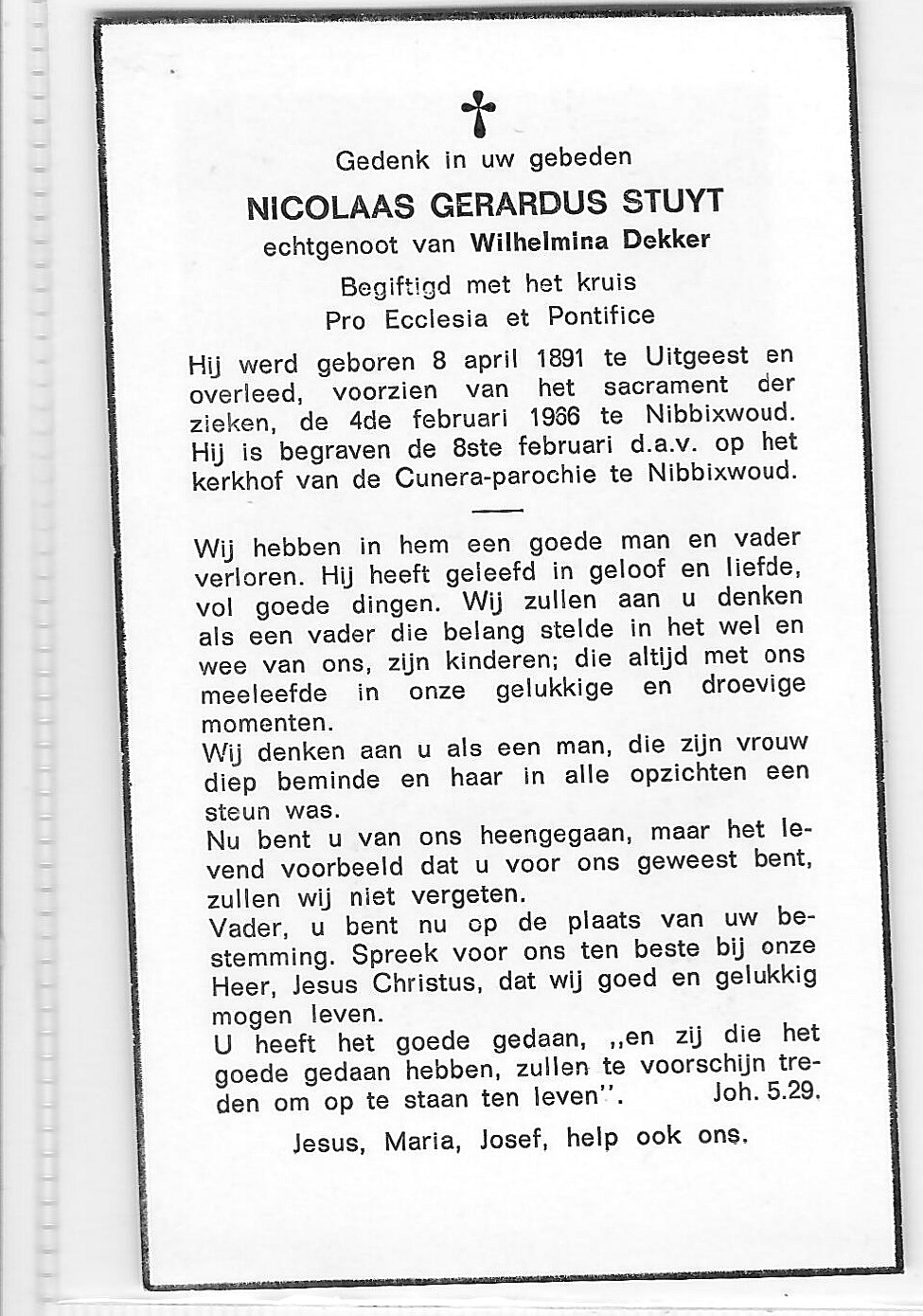 - Bladzijde: Bidprent Nicolaas Stuijt (1891-1966)