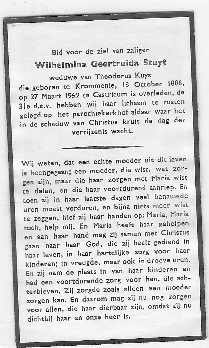 1959-03-27 bidprent Wilhelmina Geertruida Stuijt (1886-1959)