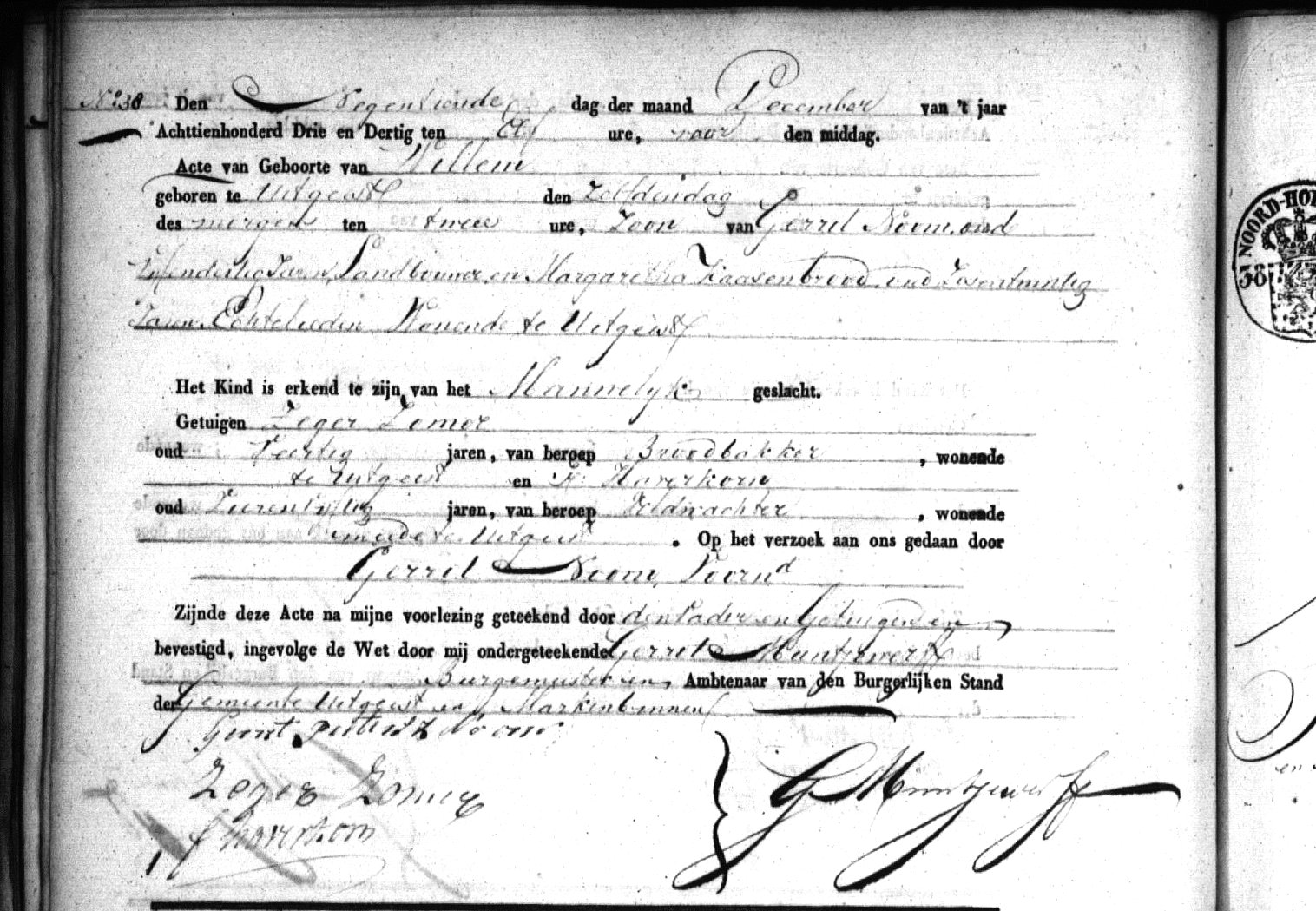 | Geboorte | 1833-12-19 | Uitgeest, Noord-Holland, Nederland | Markenbinnen/Uitgeest | 2b |