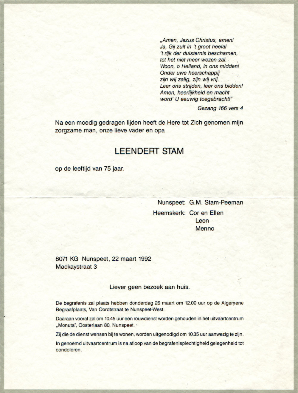 | Begrafenis | 1992-03-26 | Nunspeet, Gelderland, Nederland | ||